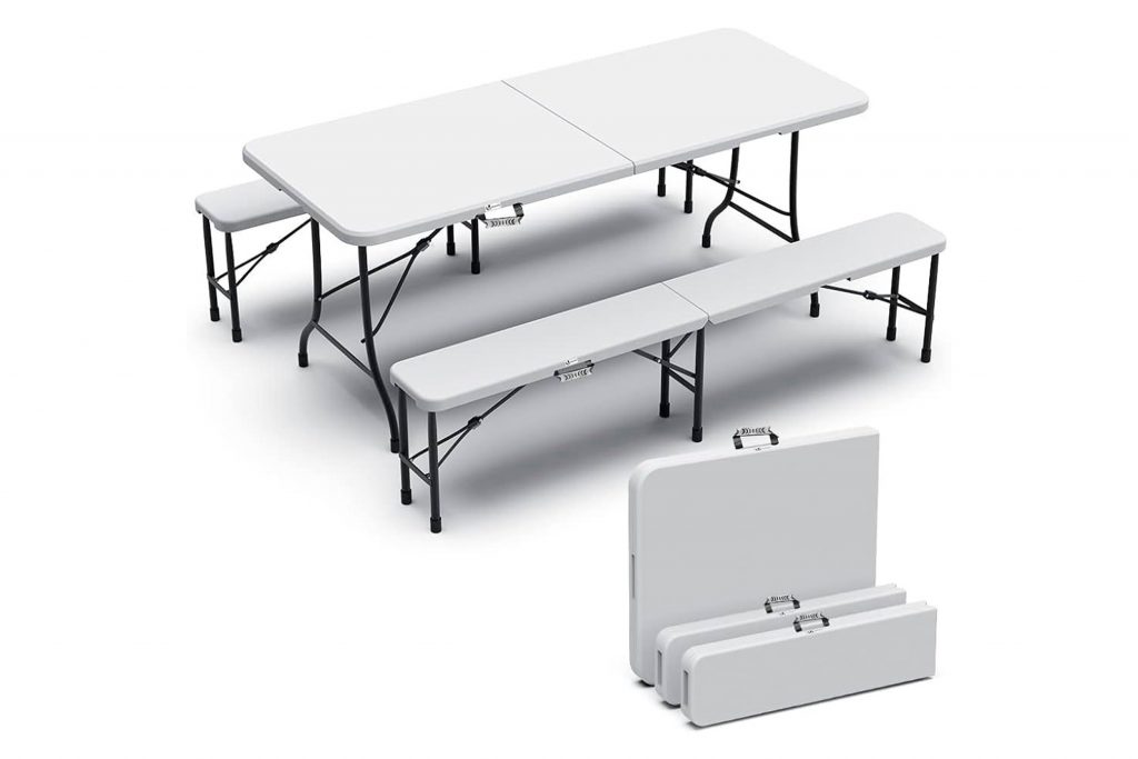 SET TAVOLO IN PVC PIEGHEVOLE E PANCHE IN PVC