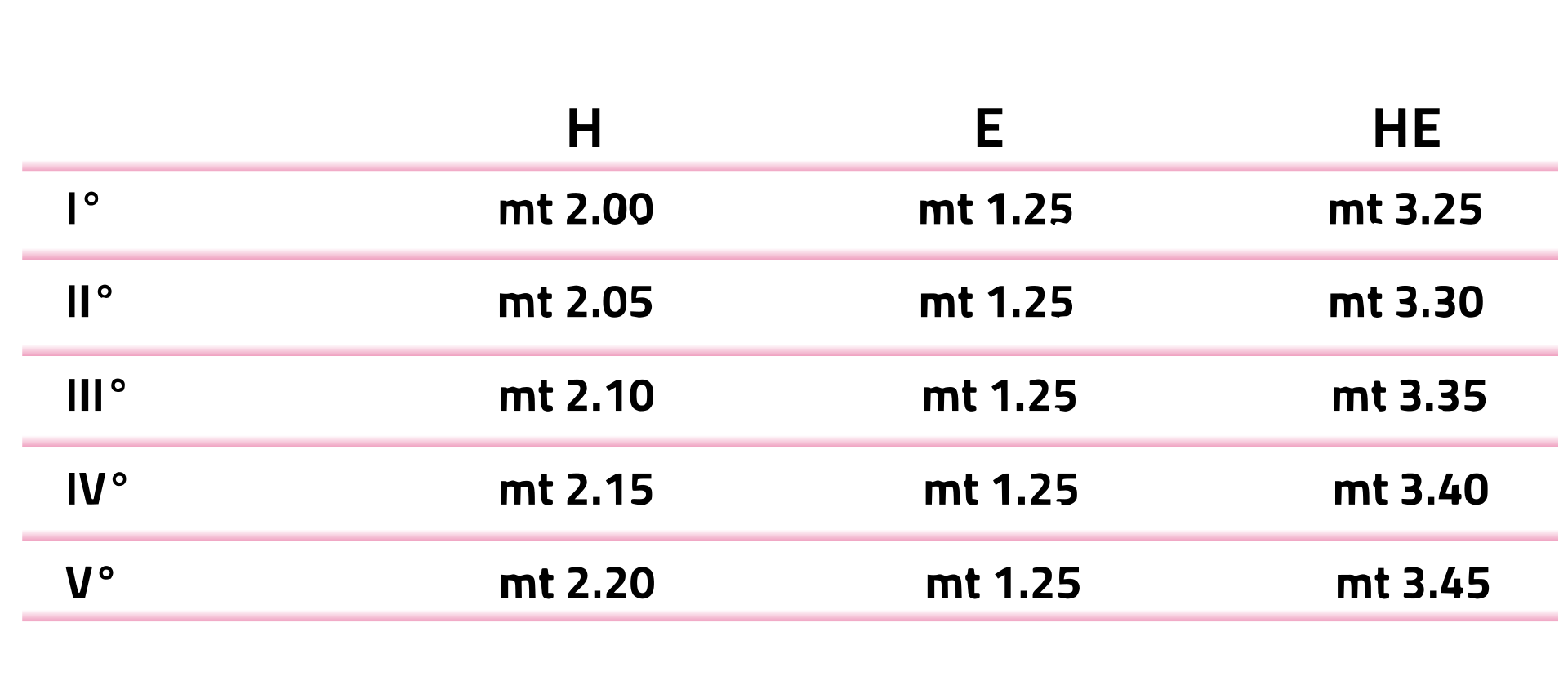 - Altezza piantone: cm 195 – 205 – 210 – 215; altezza massima tetto: cm 320 – 328 - 335 - 340