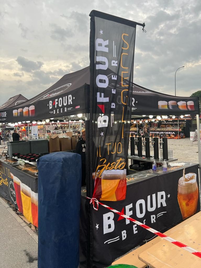 Gazebo pieghevole 3×4.5 personalizzato con tavoli e banner stampati