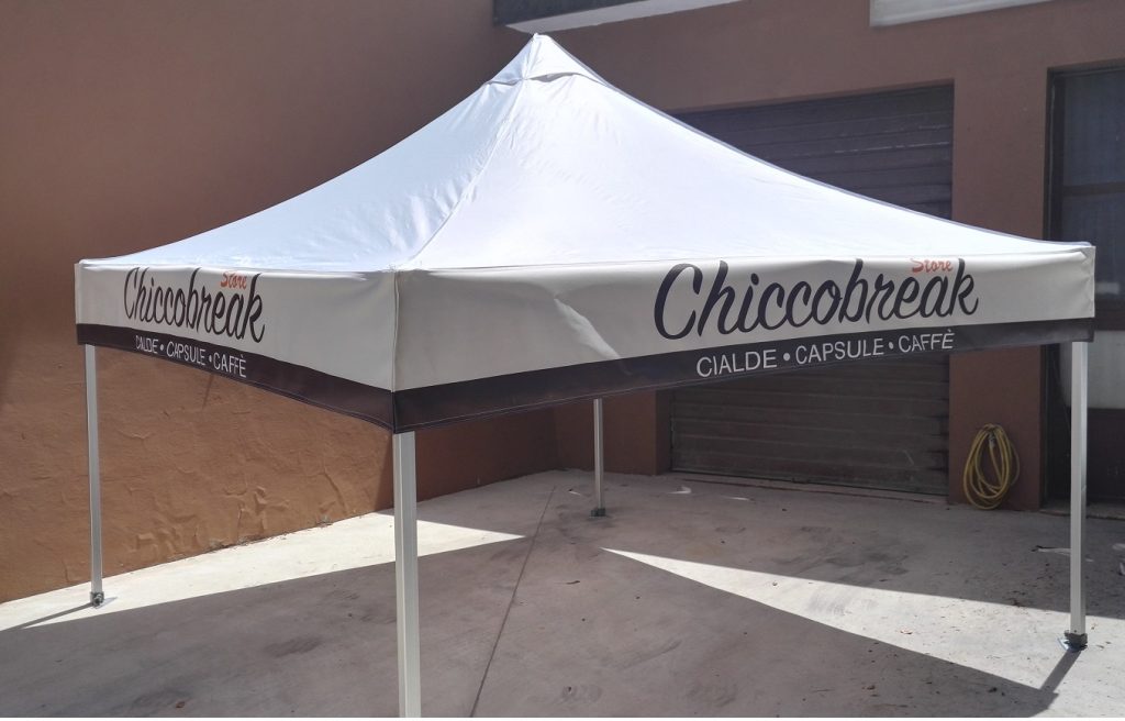 Chiccobreak sceglie il modello altamente professionale ARTUM con struttura interamente rinforzata in alluminio 40×40 con la realizzazione di 4 mantovane stampate in una grafica semplice ed elegante con ottimo impatto visivo