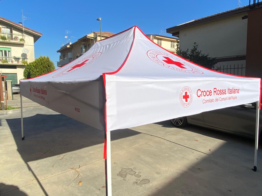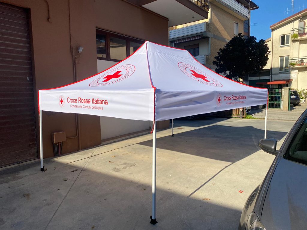 Gazebo realizzato con rifiniture stampate per un elegante effetto cromatico