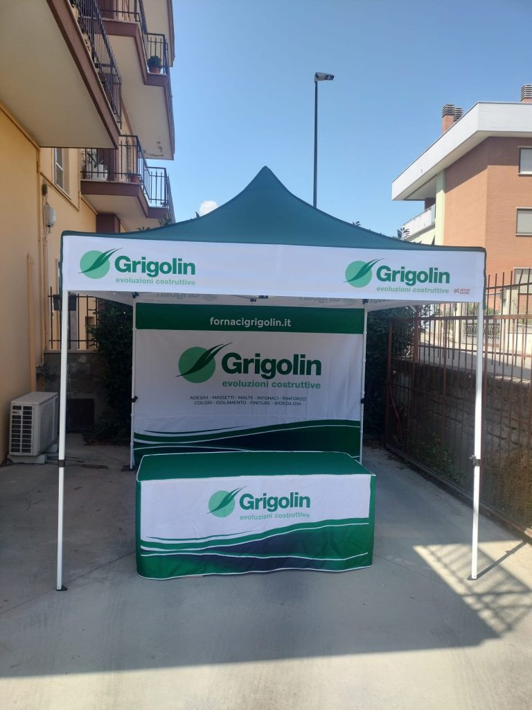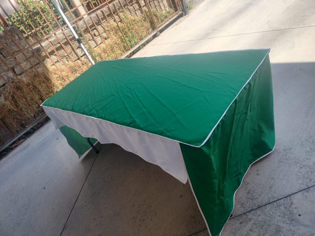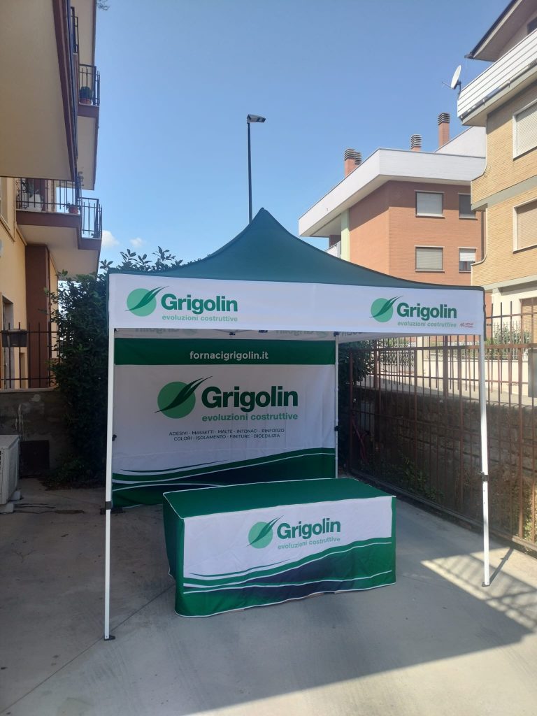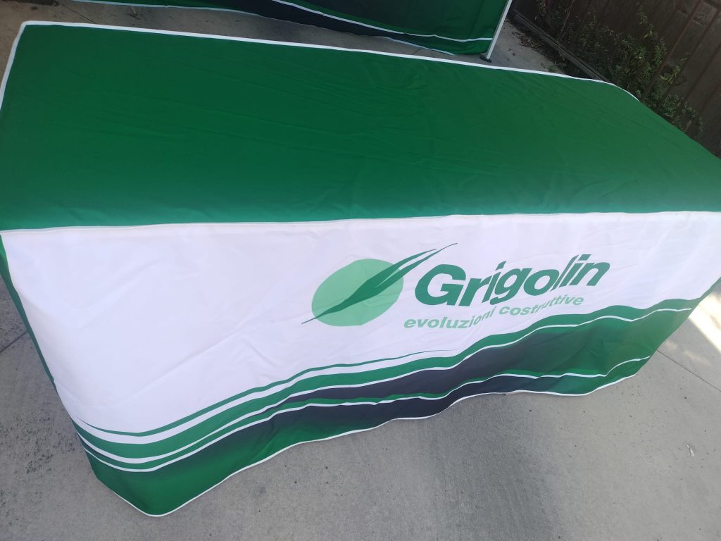 Kit gazebo professionale 3×3 estensibile completo di tavolo pieghevol, copritavolo personalizzato e parete di fondo stampata
