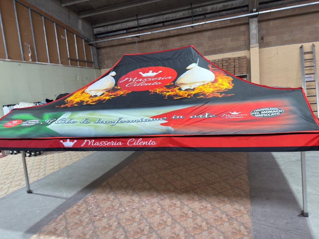 Gazebo pieghevole 3×4.5 personalizzato con pensilina frontale