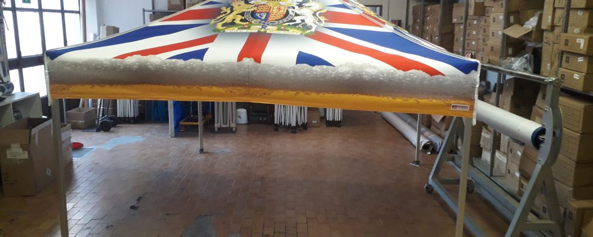 gazebo estensibile 3×3 interamente stampato per The Beer. grafica a bandiera inglese